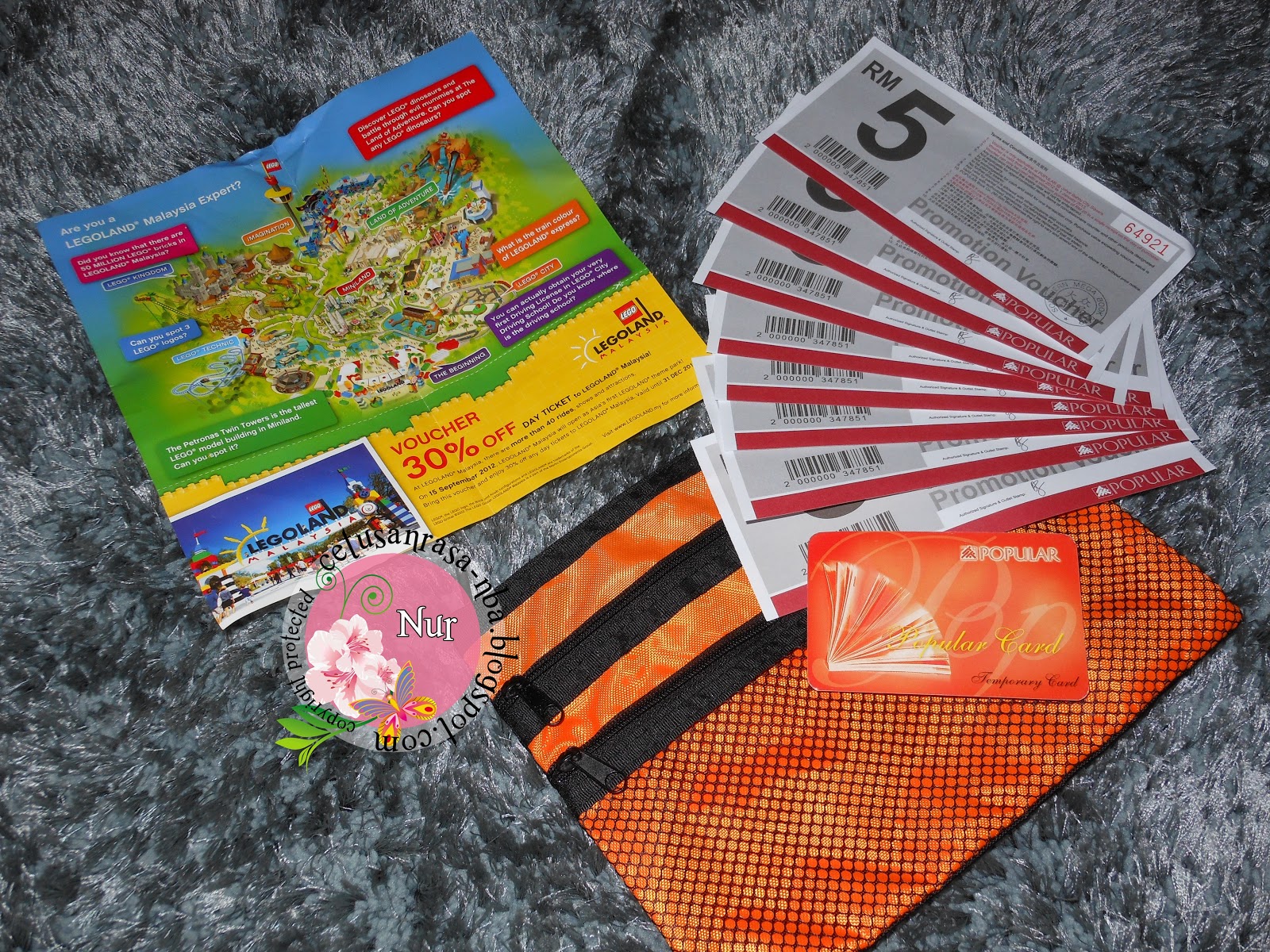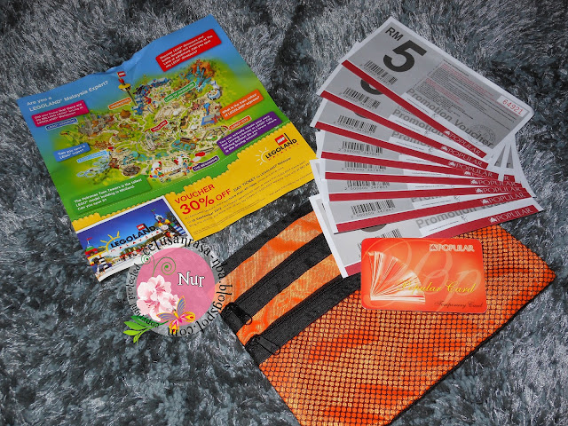 Mendaftar sebagai ahli.. 2 free gift iaitu diskaun 30% untuk ke Legoland dan hadiah poket beg berwarna oren. Voucher2 tu pula diberi percuma bagi setiap pembelian sebanyak RM80 dalam satu resit.